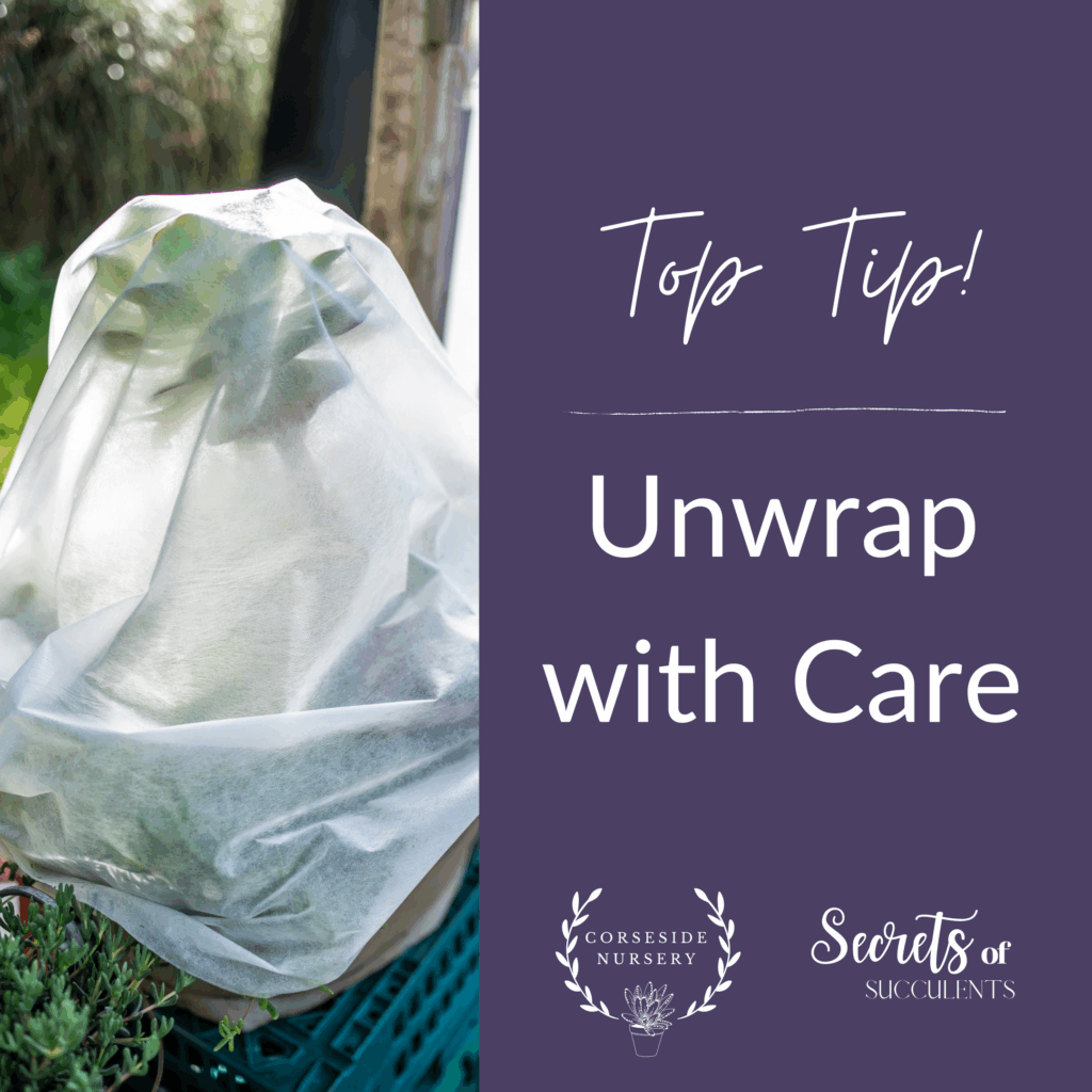 If you protected your succulents with fleece, bubble wrap, duvets, or makeshift shelters — brilliant! But once temperatures start climbing above freezing, it’s important to remove those layers.