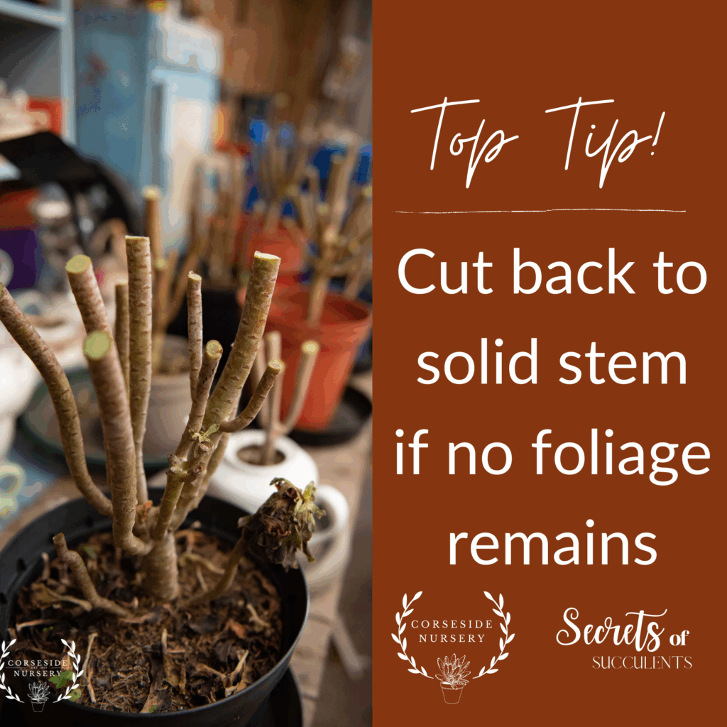 Cut Back to Solid Stem if the Plant Has Lost All Leaves