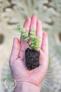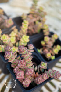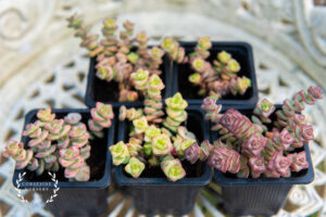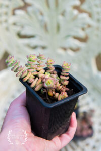 This listing is for one carefully packaged, well-rooted Crassula x rupestris subsp. marnieriana, sometimes called the Jade Necklace, Hottentot or Baby’s Necklace plant.