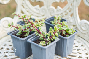 Portulacaria afra ‘Variegata’ is a resilient and adaptable succulent, making it ideal for beginners and collectors alike.